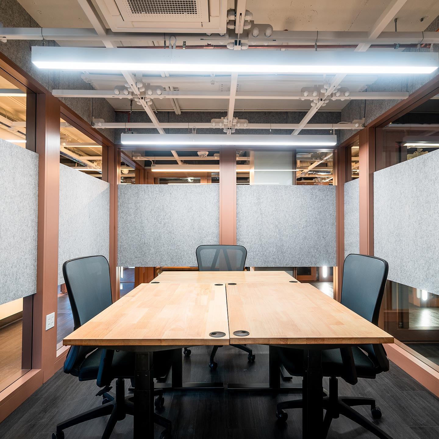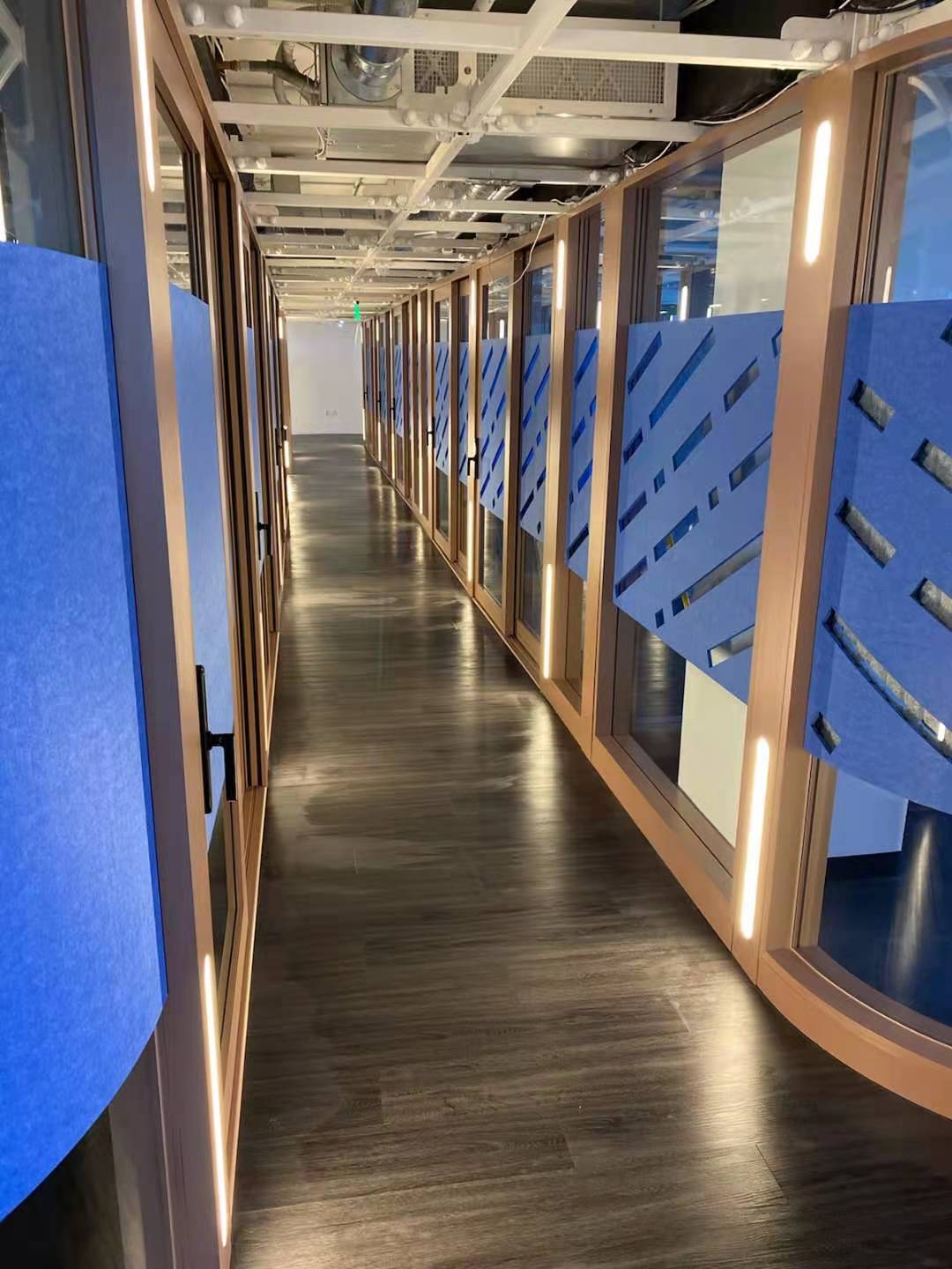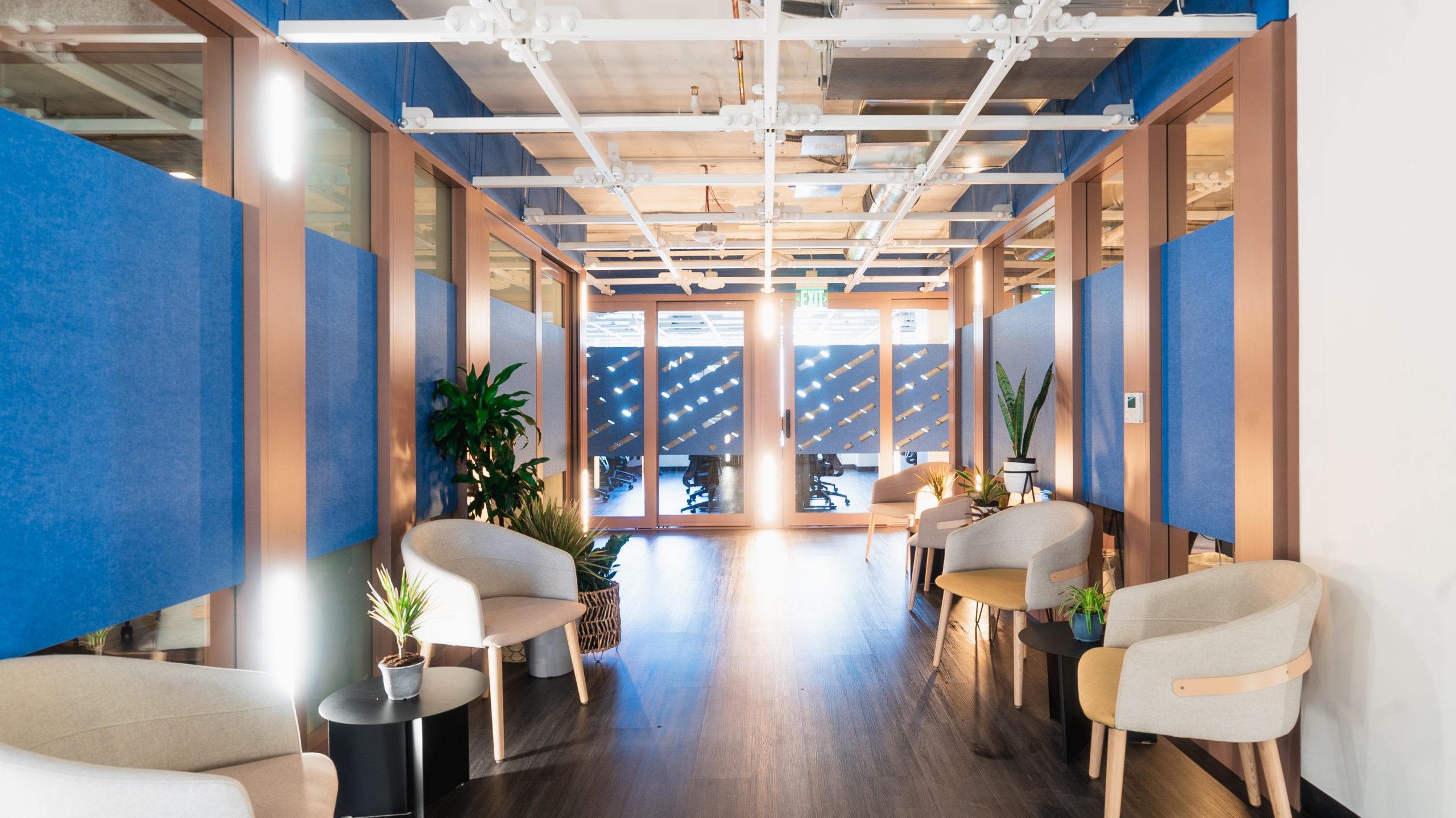For San Mateo, we have developed a completely new Wall System, Werqwall. It allows, in few minutes, to change any wall layout so it fit all office size requested. Featured with Lit up walls, smart lighting and smart access control, workplace becomes an interactive environment "centered around people and ensuring that the [...] experiences adapt to their continually, rapidly-changing needs in a sustainable manner" as said by Alan Mackay, its founder and CEO.